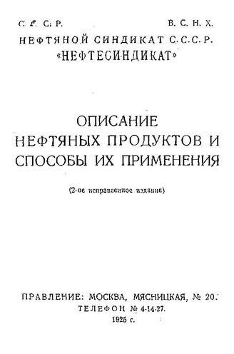 Описание нефтяных продуктов и способы их применения. - М., 1925.