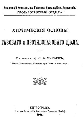 Химические основы газового и противогазового дела / химический комитет при главном артиллерийск. управлении. Противогазовый отдел, 1918. - 144.