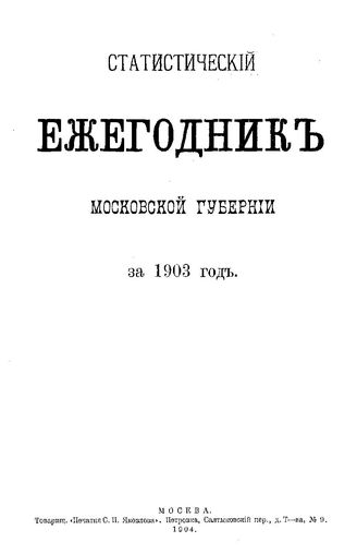 Статистический ежегодник Московской губернии. 1903 г.. - М., 1904.