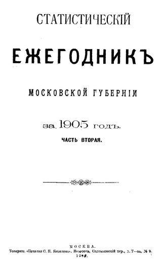 Статистический ежегодник Московской губернии. 1905 г., Ч. 2. - М., 19.