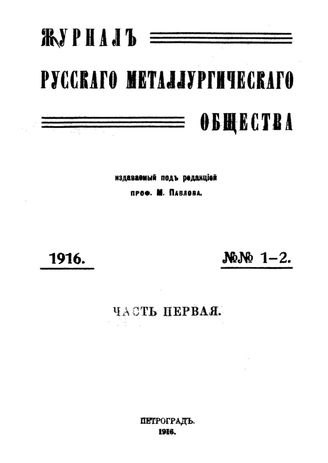 Журнал русского металлургического общества. 1916. N №1-2 часть 1