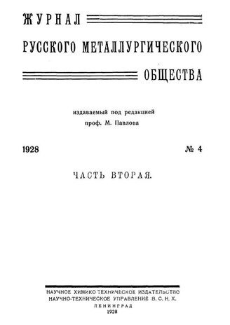 Журнал русского металлургического общества. 1928. N №4 часть 2. - , .