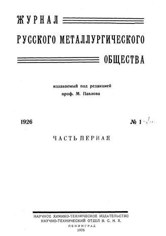 Журнал русского металлургического общества. 1926. N №01-02 часть 1
