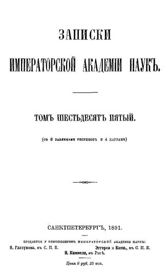 Записки Императорской академии наук / Императорская академия наук (Санкт-Петербург). Т. 65, 1891. - 706 с.