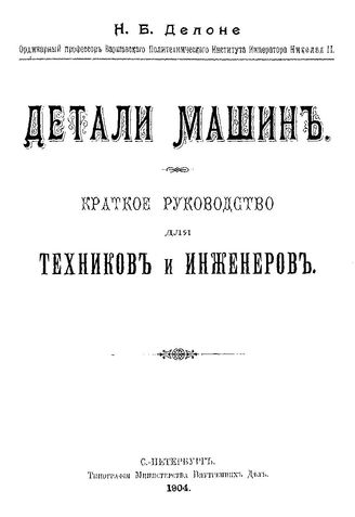 Делоне Н.Б. Детали машин : крат. руководство для техников и инженеров / Н. Б. Делоне, 1904. - 178 с.
