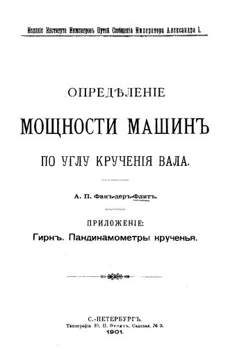 Фан-дер-Флит А.П. Определение мощности машин по углу кручения вала. - СПб., 1901.