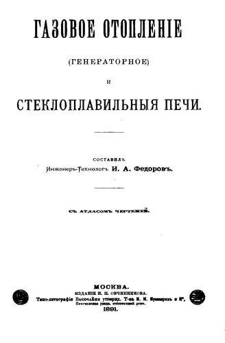 Газовое отопление (генераторное) и стеклоплавильные печи / Сост. И.А. Федоров, 1891. - 205 с.