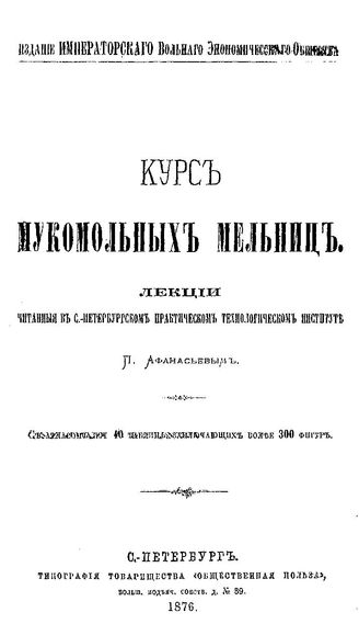Афанасьев П. Курс мукомольных мельниц. - СПб., 1876.