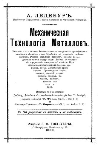 Ледебур А. Механическая технология металлов / А. Ледебур, 1900. - 554 с.