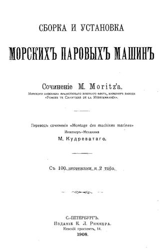Моритц М. Сборка и установка морских паровых машин / М. Моритц, 1908(СПб.). - 137 137 с.