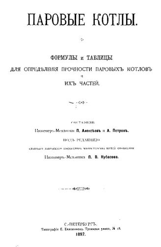 Паровые котлы. Формулы и таблицы для определения прочности паровых котлов и их частей / сост. П. Алексеев и др., 1897. - 477 с.