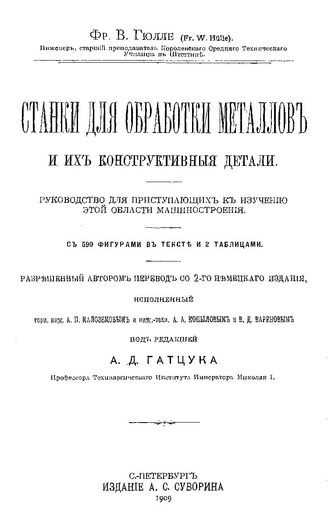 Гюлле Ф.В. Станки для обработки металлов и их конструктивные детали : руководство для приступающих к изучению этой области машиностроения / Ф. В. Гюлле, 1909. - 494 494 с.
