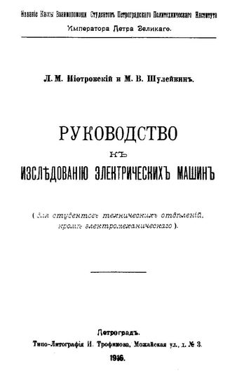 Пиотровский Л. М., Шулейкин М. В. Руководство к исследованию электрических машин. - Петроград, 1916.