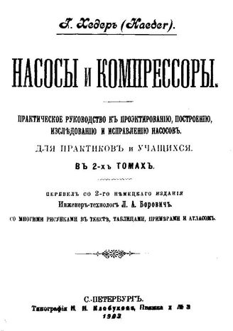 Насосы и компрессоры / Г. Хедер. Т. 1, 1903. - 620 620,4 с.