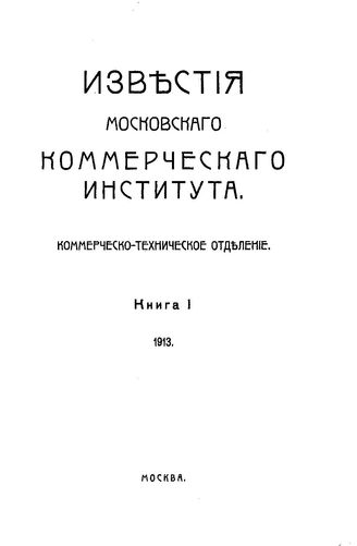 Известия Московского коммерческого института. Коммерческо-техническое отделение. Кн. 1, 1913. - 112 с.