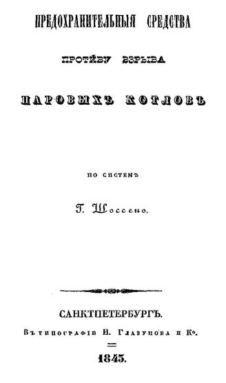 Предохранительные средства против взрыва паровых котлов по системе Г. Шоссено, 1845. - 47 с.