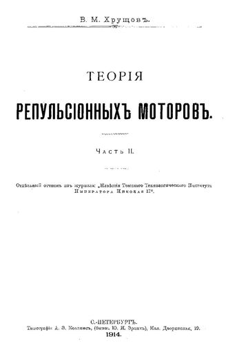 Теория репульсионных моторов / В. М. Хрущов. Ч. 2, 1914. - 25 с.