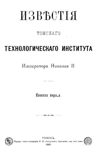 Известия Сибирского технологического института. Кн. 1. - Томск, 1903.