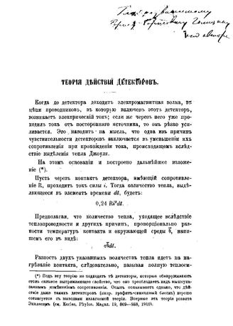 Петровский А. Теория действия детекторов / А. Петровский, 1911. - 6 с.