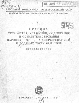 Правила устройства, установки, содержания и освидетельствования паровых котлов, пароперегревателей и водяных экономайзеров, 1941. - 57 с.