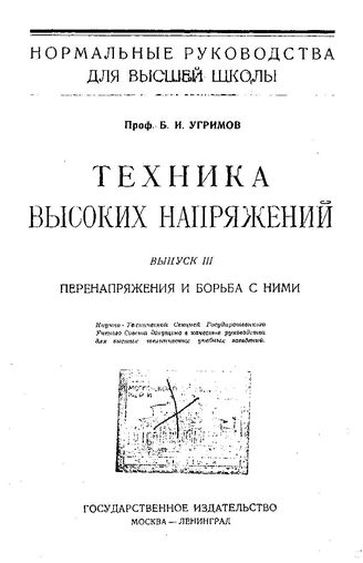Техника высоких напряжений Б. И. Угримов. - (Нормальные руководства для высшей школы). Вып. 3 : Перенапряжения и борьба с ними. - М., 1923.