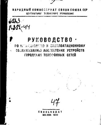 Руководство по оборудованию и эксплуатационному обслуживанию абонентских устройств городских телефонных сетей / Народ. комиссариат связи Союза ССР. Центр. телефон. упр., 1944. - 83 с.