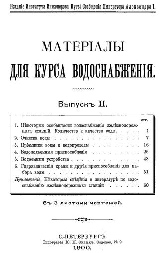 Материалы для курса водоснабжения / Ин-т инженеров путей сообщения Императора Александра I. Вып. 2, 1898. - 65 с.