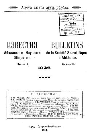 Известия Абхазского научного общества / Абхазское науч. о-во. Вып. 3, 1926. - 107 с.